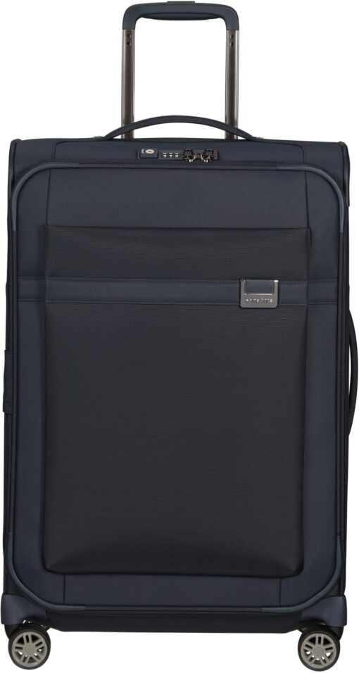 Weichgepäck von Samsonite steht für Langlebigkeit. Die strapazierfähigen Obermaterialien des AireA Trolleys sind so konzipiert, dass sie Abrieb und Verschleiß widerstehen. Gleichzeitig besticht der Trolley durch ein modernes und zeitloses Design, das auch optisch überzeugt. Die dunkelblaue Farbgebung strahlt Eleganz und Seriosität aus und ist gleichzeitig unempfindlich gegenüber leichten Verschmutzungen.